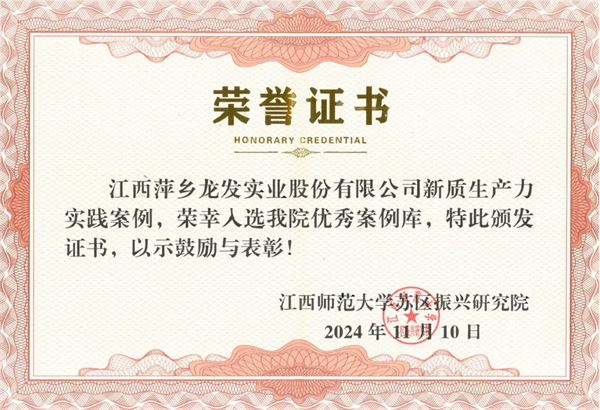 龍發(fā)實(shí)業(yè)新質(zhì)生產(chǎn)力實(shí)踐案例榮幸入選江西師范大學(xué)蘇區(qū)振興研究院優(yōu)秀案例庫2024/11/11